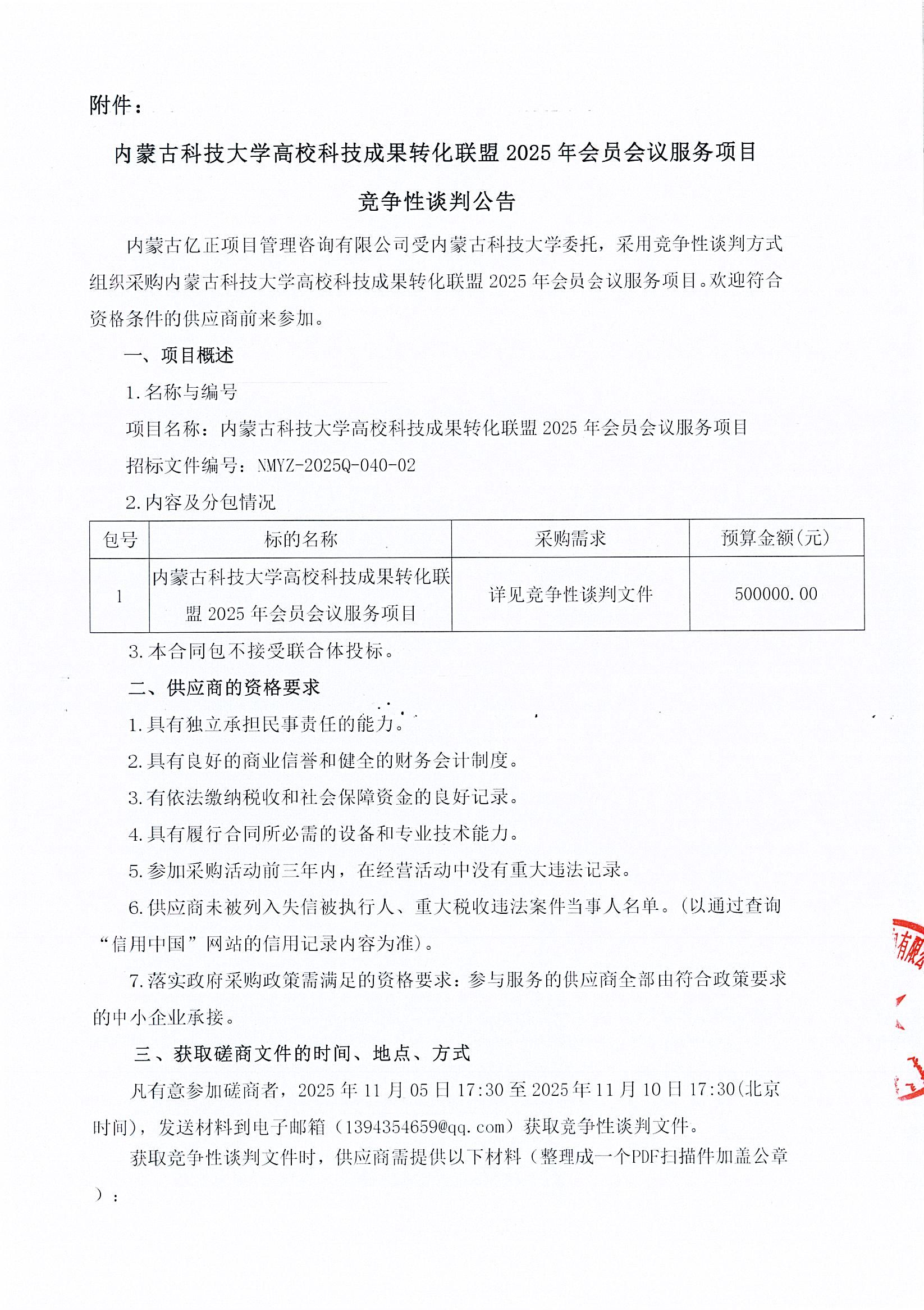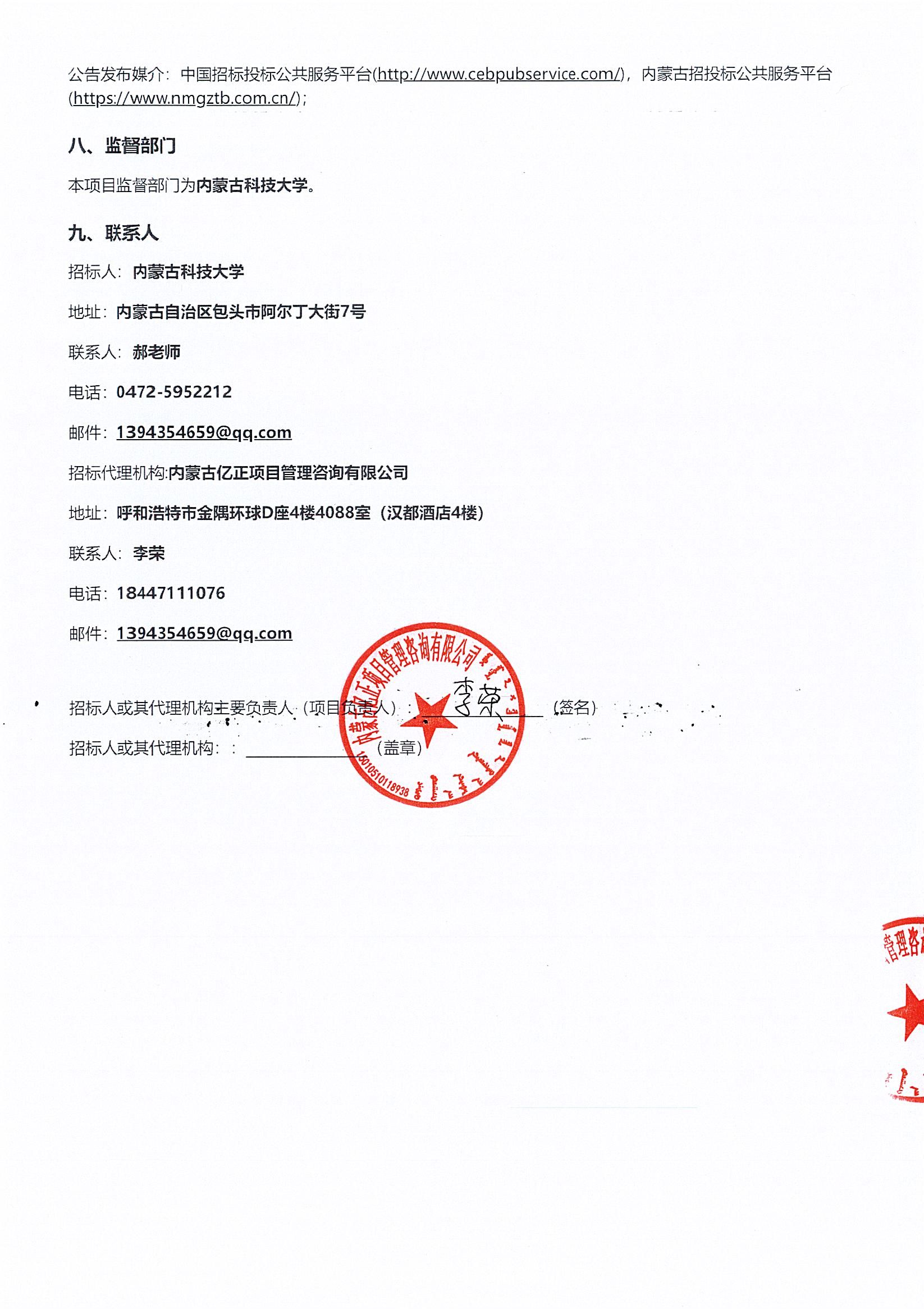 上一条:内蒙古科技大学人工智能+智慧教室升级改造项目招标公告 下一条:内蒙古科技大学稀土产业学院智慧课程建设服务采购项目(二次)竞争性磋商公告