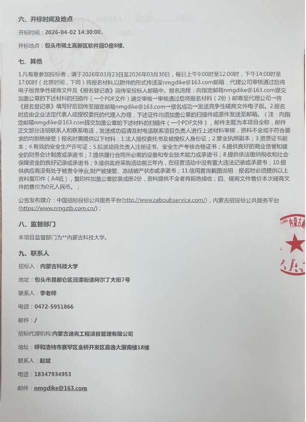上一条:内蒙古科技大学2026年毕业生招聘会会议服务竞争性磋商公告 下一条:内蒙古科技大学中外青年文化交流及国际技能培训服务采购项目招标公告