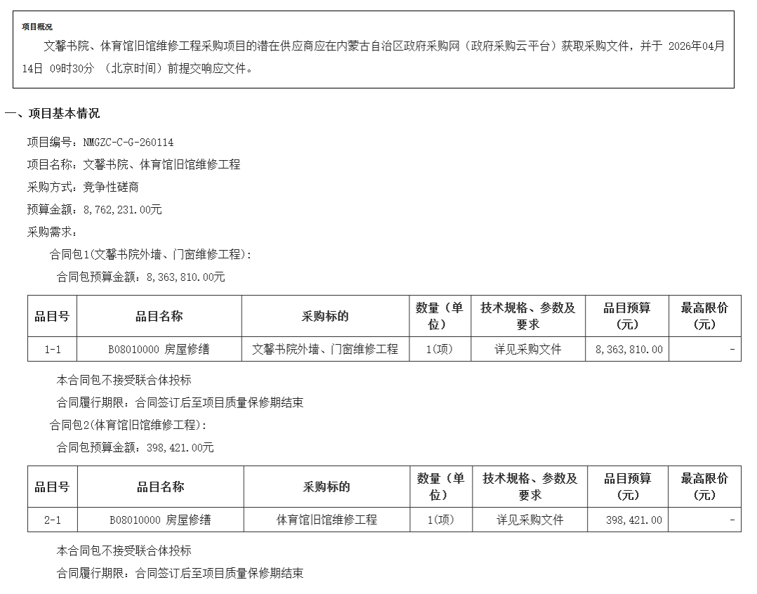 合同包1(文馨书院外墙、门窗维修工程)特定资格要求如下: