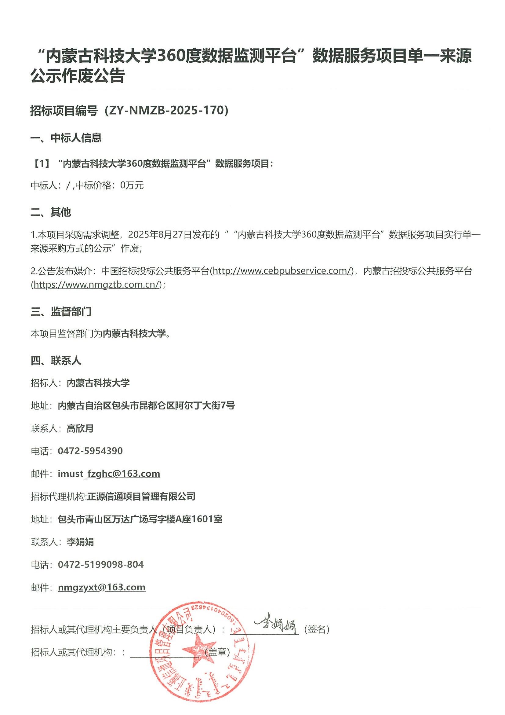上一条:“内蒙古科技大学360度数据监测平台”数据服务项目 实行单一来源采购方式的公示 下一条:“内蒙古科技大学360度数据监测平台”数据服务项目 实行单一来源采购方式的公示