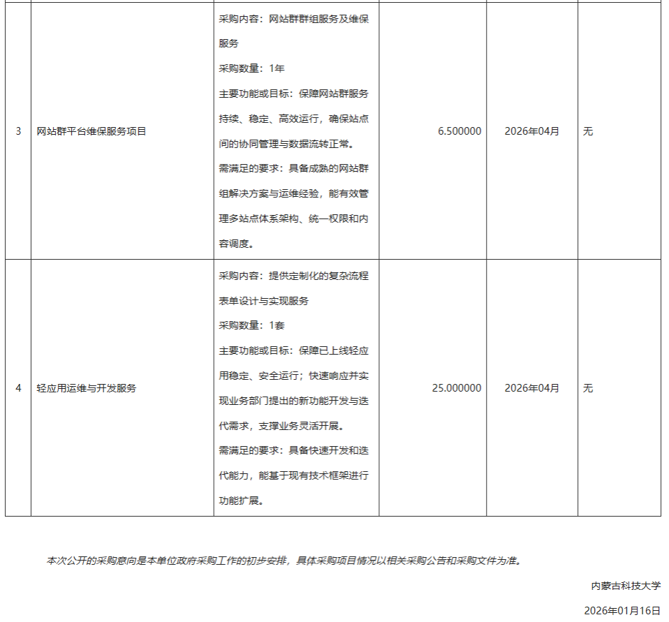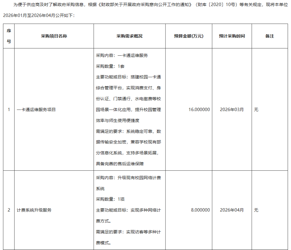 下一条:内蒙古科技大学2026年01月至2026年03月学科专业设备采购政府采购意向