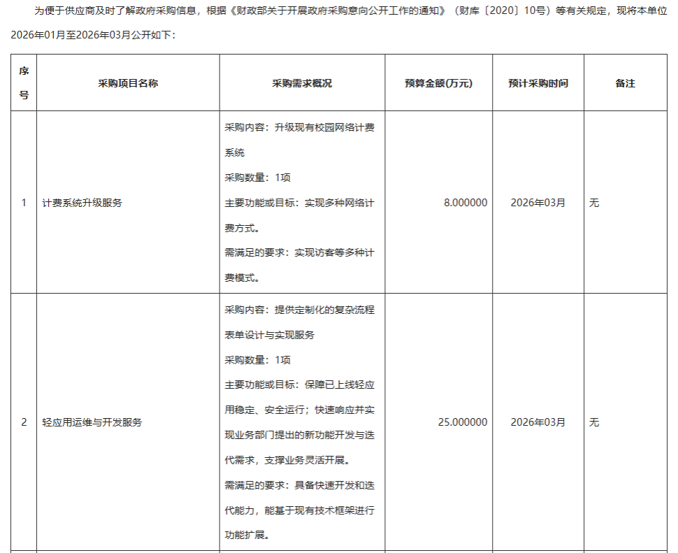 上一条:内蒙古科技大学2026年01月至2026年03月应用软件政府采购意向 下一条:内蒙古科技大学2026年01月至2026年03月工程维修装修政府采购意向