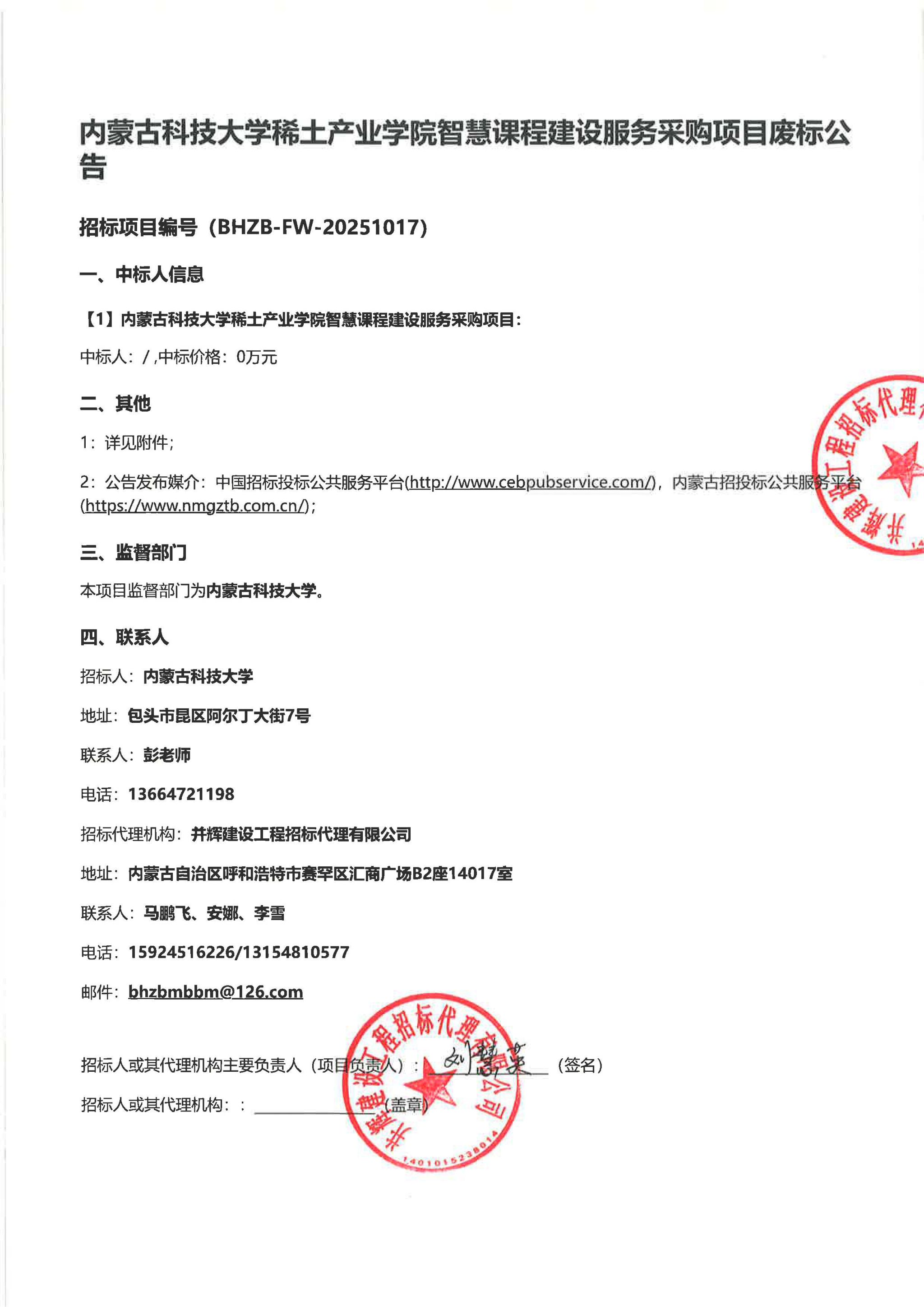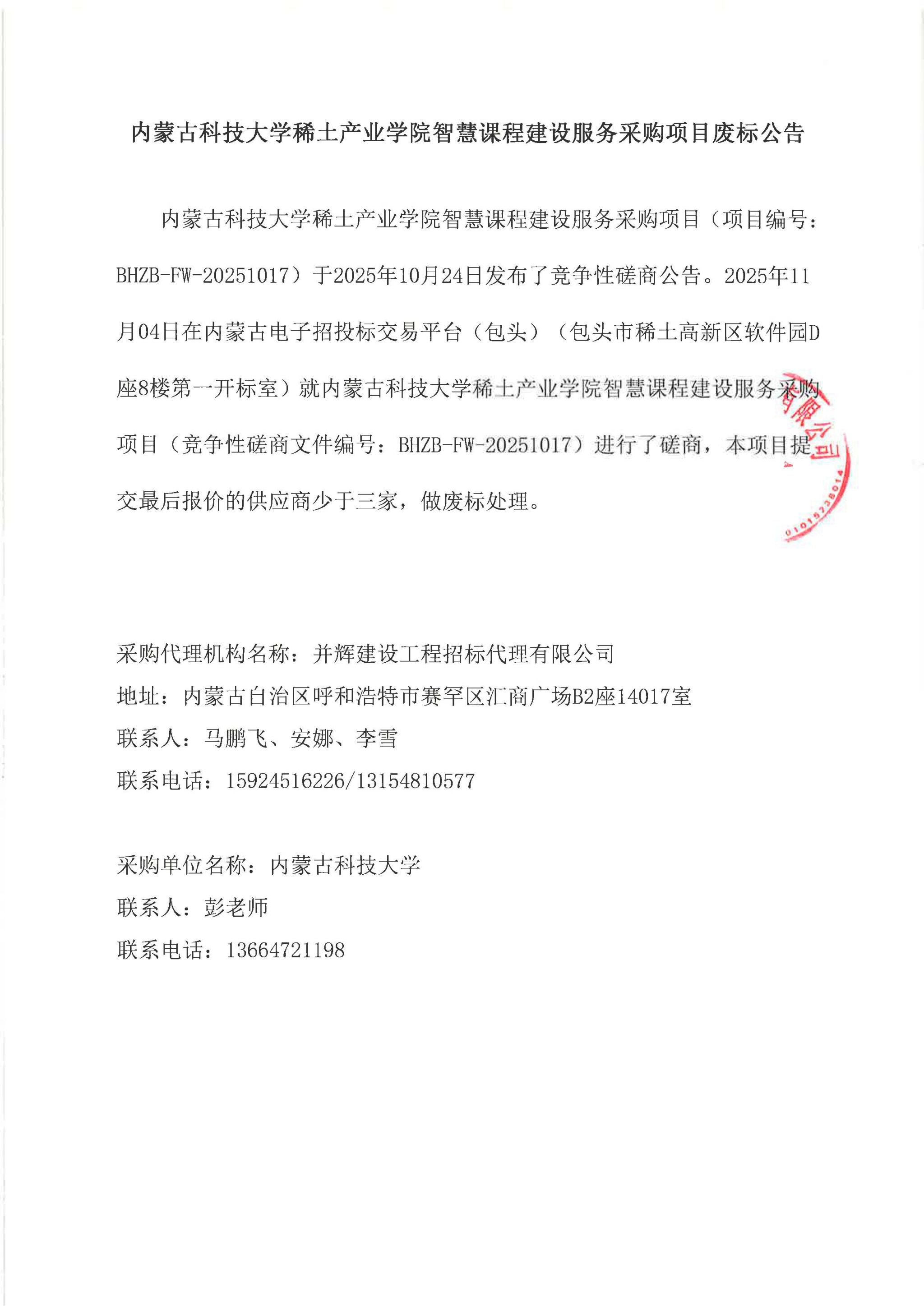 下一条:内蒙古科技大学稀土产业学院智慧课程建设服务采购项目废标公告